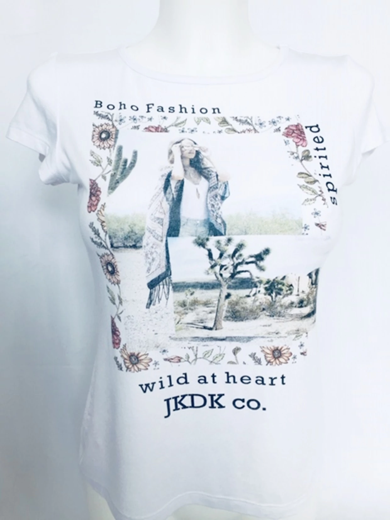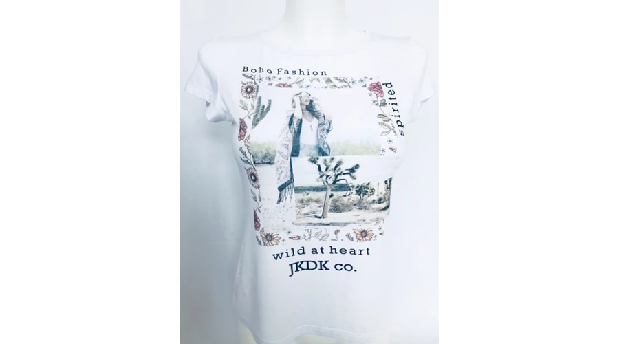 Fehér színű lány divat póló. Elején divatos nyomattal.
