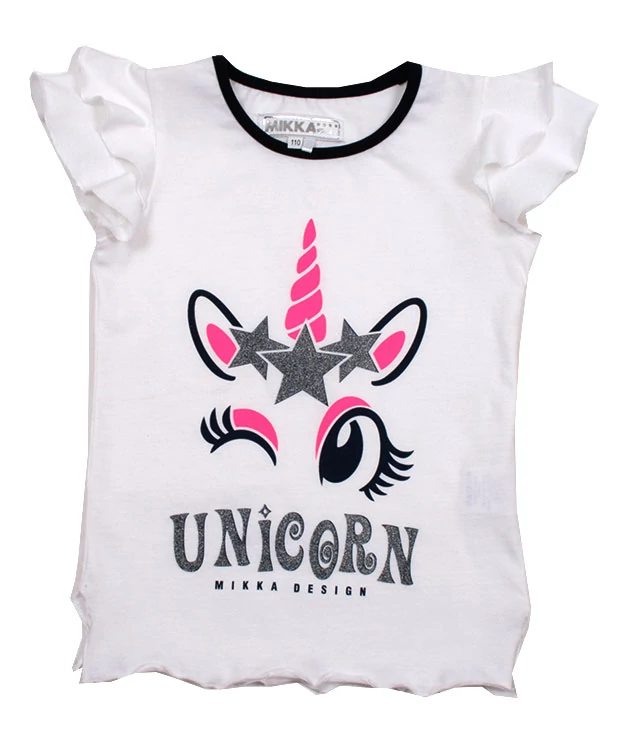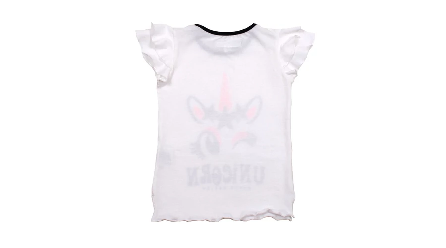 | Fehér színű,fodros ujjú unikornisos póló.Minőségi nyomata,légáteresztő bőrbarát technológiával készült.Ujja, illetve alja enyhén fodros. Jól kihasználható kényelmes és divatos felső.Szín-méret-formatartó.95% pamut 5% elasztán. |